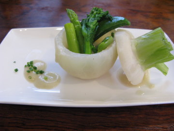 くりぬいたカブの中にアスパラ・菜の花・スナップえんどう・空豆が入ってました。