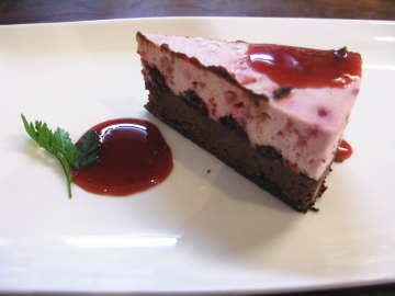 オマケのデザートの『フランボワーズムースとチョコレートのケーキ』